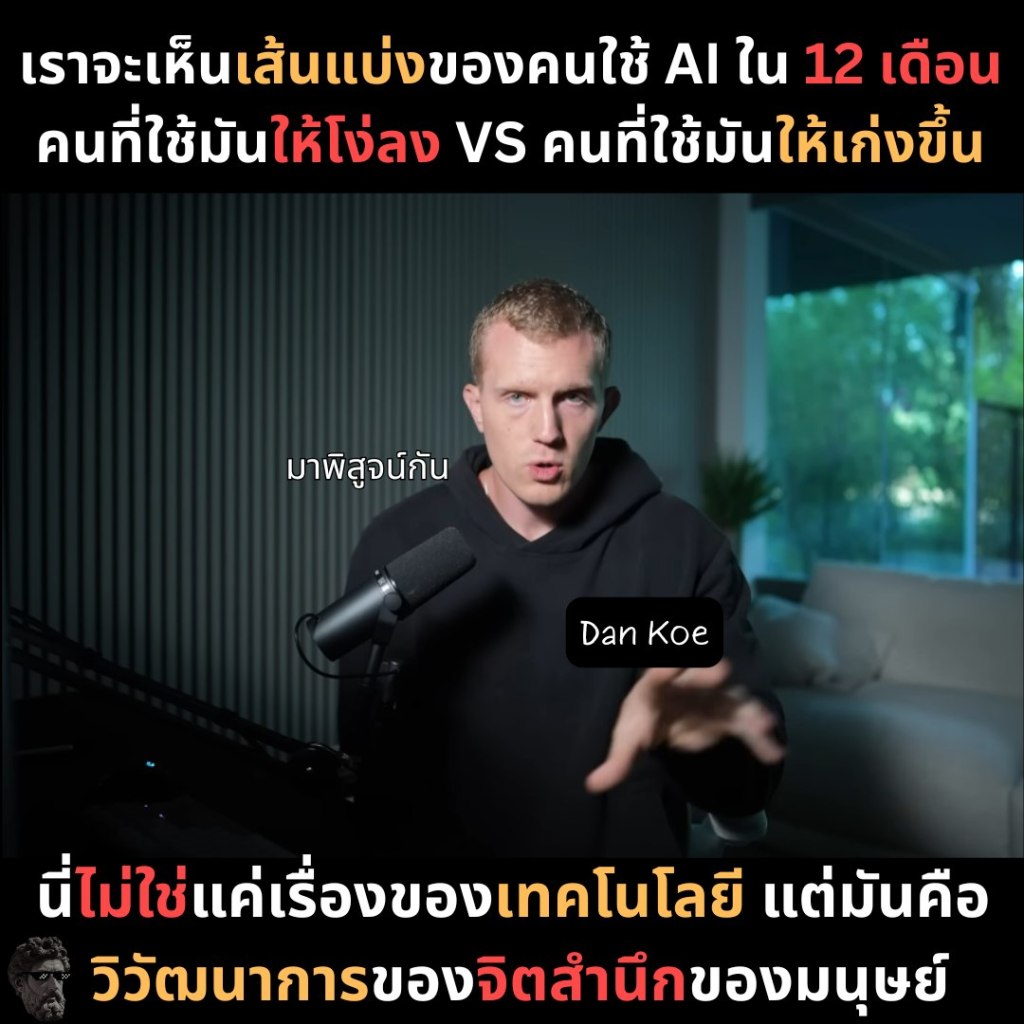 • เราจะเห็นเส้นแบ่งของคนใช้ AI ใน 12 เดือน คนที่ใช้มันให้โง่ลง VS คนที่ใช้มันให้เก่งขึ้น