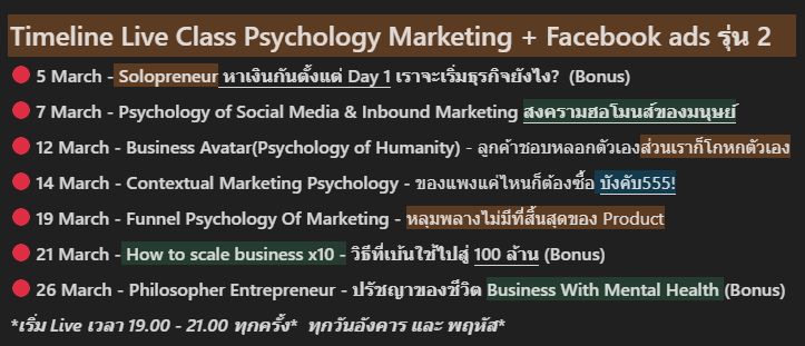 Live สด 4 ครั้ง (Marketing + Psychology ดุๆ)