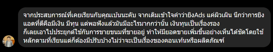 ทั้งหมด เป็นสิ่งที่เบ้น ทำมากับธุรกิจเบ้น จริงๆ ไม่ใช่ ทฤษฎี อ่านหนังสือมาเล่า