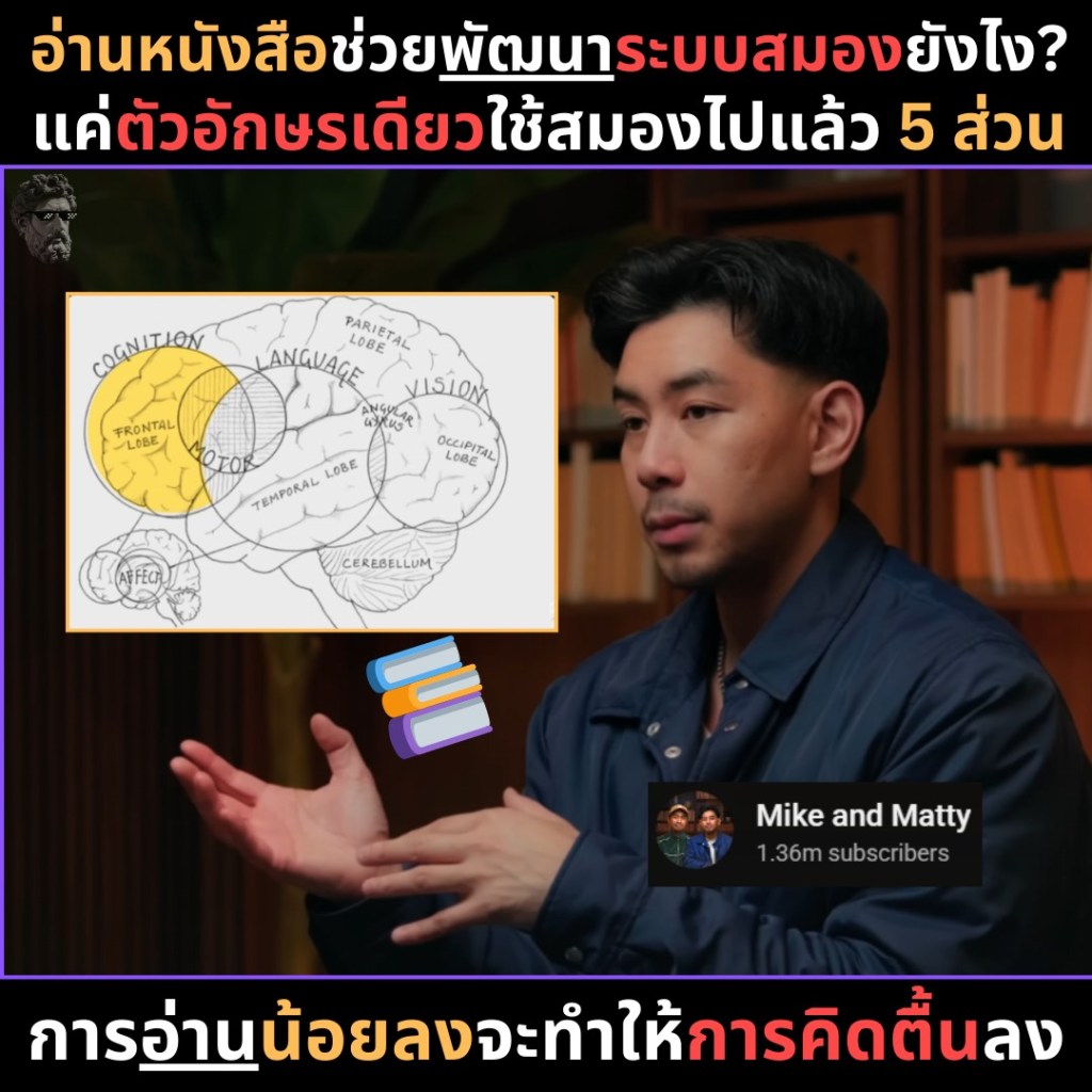 • อ่านหนังสือช่วยพัฒนาระบบสมองยังไง? แค่ตัวอักษรเดียวใช้สมองไปแล้ว 5 ส่วน
