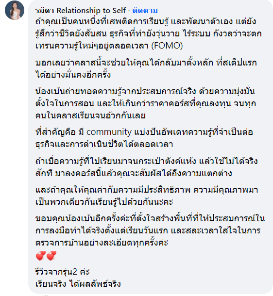- ได้ทั้งความรู้ + Map + Action + Community → ครบวงจรในการสร้าง One Person Business